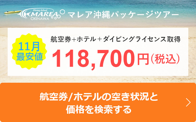 国内の主要空港を始め、全国各地からの往復航空券、宿泊予約、各種PADIスキューバダイビング講習・ファンダイビングを一括でご予約いただけます。